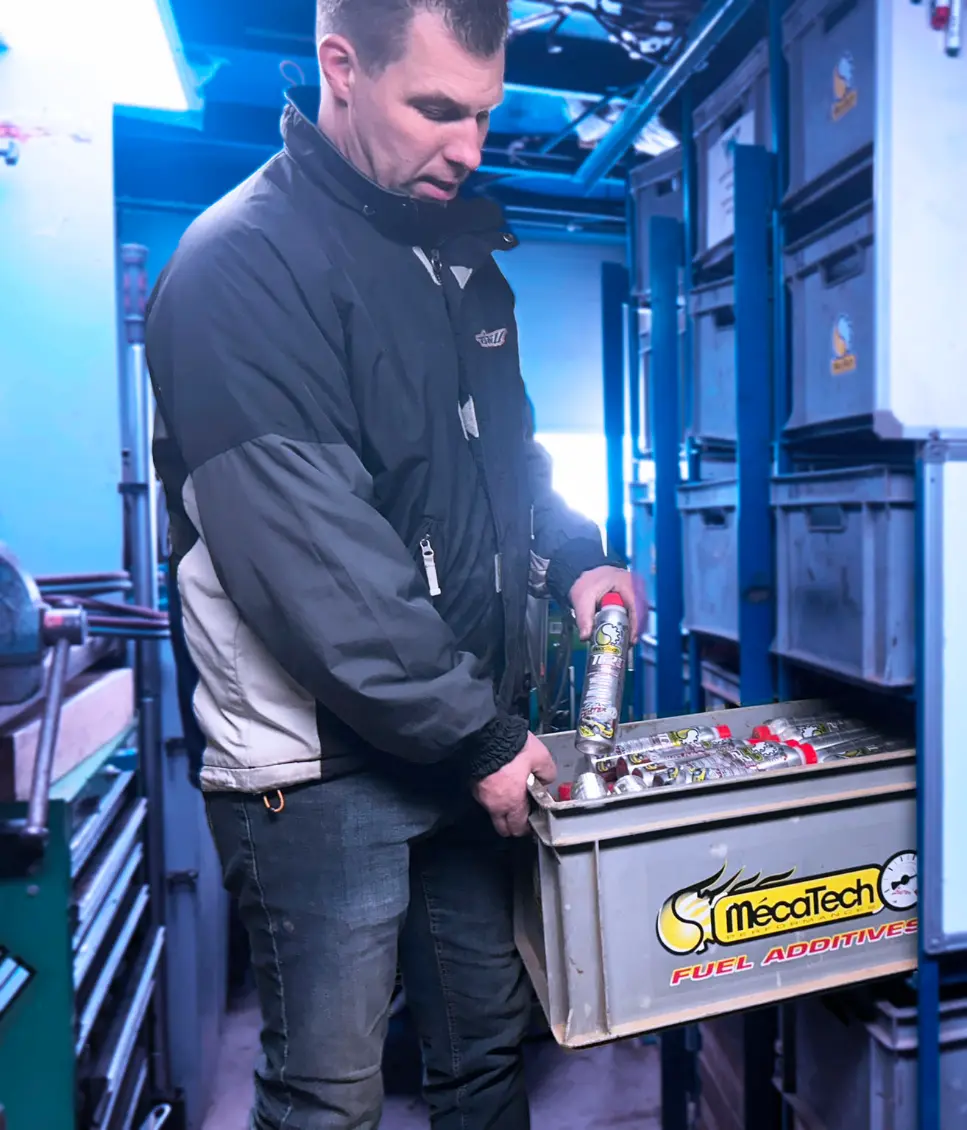 Sindsdien werkt het team met verschillende producten van Dupag, waaronder oliën en brandstofadditieven van Mécatech. “De kwaliteit van de diesel in landen als Saudi-Arabië is heel wisselend. Daar hadden we last van verkoling en vervuiling. Sinds we MécaTech TC2 gebruiken, blijven de motor en verstuivers schoner. We zien minder afzetting, minder slijtage, en betere prestaties.”